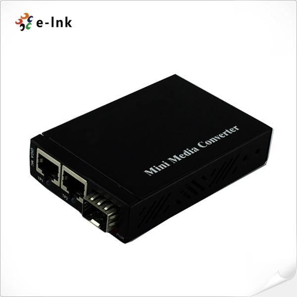 Mini 2x 10/100/1000Base-T RJ45 to 1x 1000Base-X SFP Slot Gigabit Ethernet Media Converter Images |