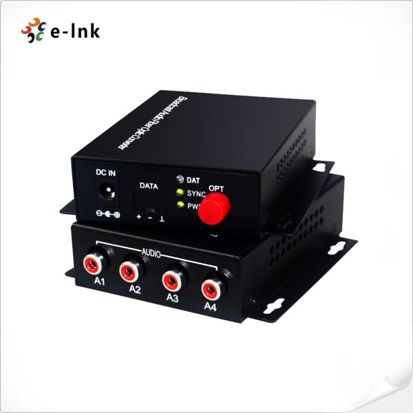 E-link 4Ch RCA Audio over Fiber Optical Converter for CCTV audio and Professional Grade AV audio transmission over single mode and multimode fibers over distances up to 20 km and more. Support 4Ch 24-bit digitally encoded broadcast quality audio over one multi-mode or single-mode optical fiber. These fiber optic transmitter and fiber optic receiver are typically used in applications for Rental, Staging, Theater, Stadiums, Theme Parks, Broadcast/Studio, CCTV audio and Professional AV applications, etc, and are available for stand-alone or rack-mount installations.